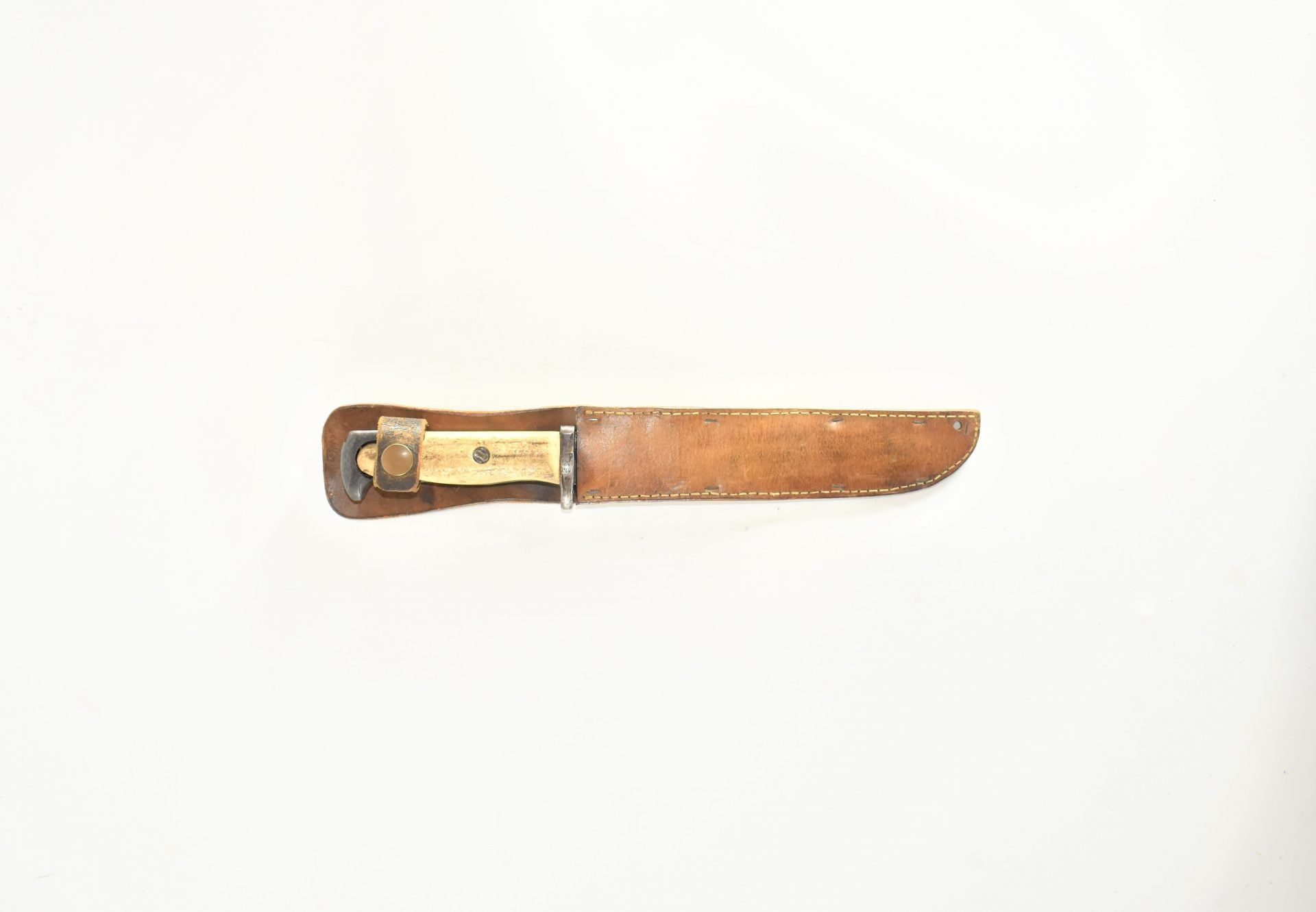 Nice and unique possibly privately made Knife, rare in its setup and still with its original leather scabbard.