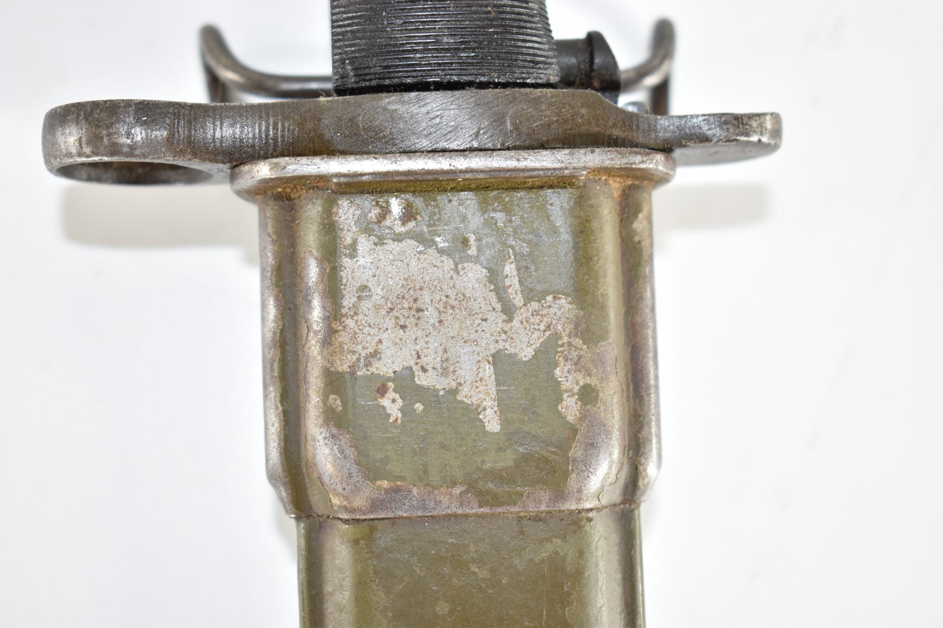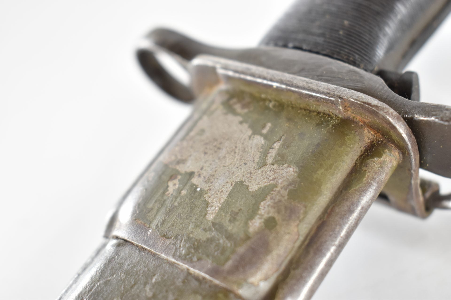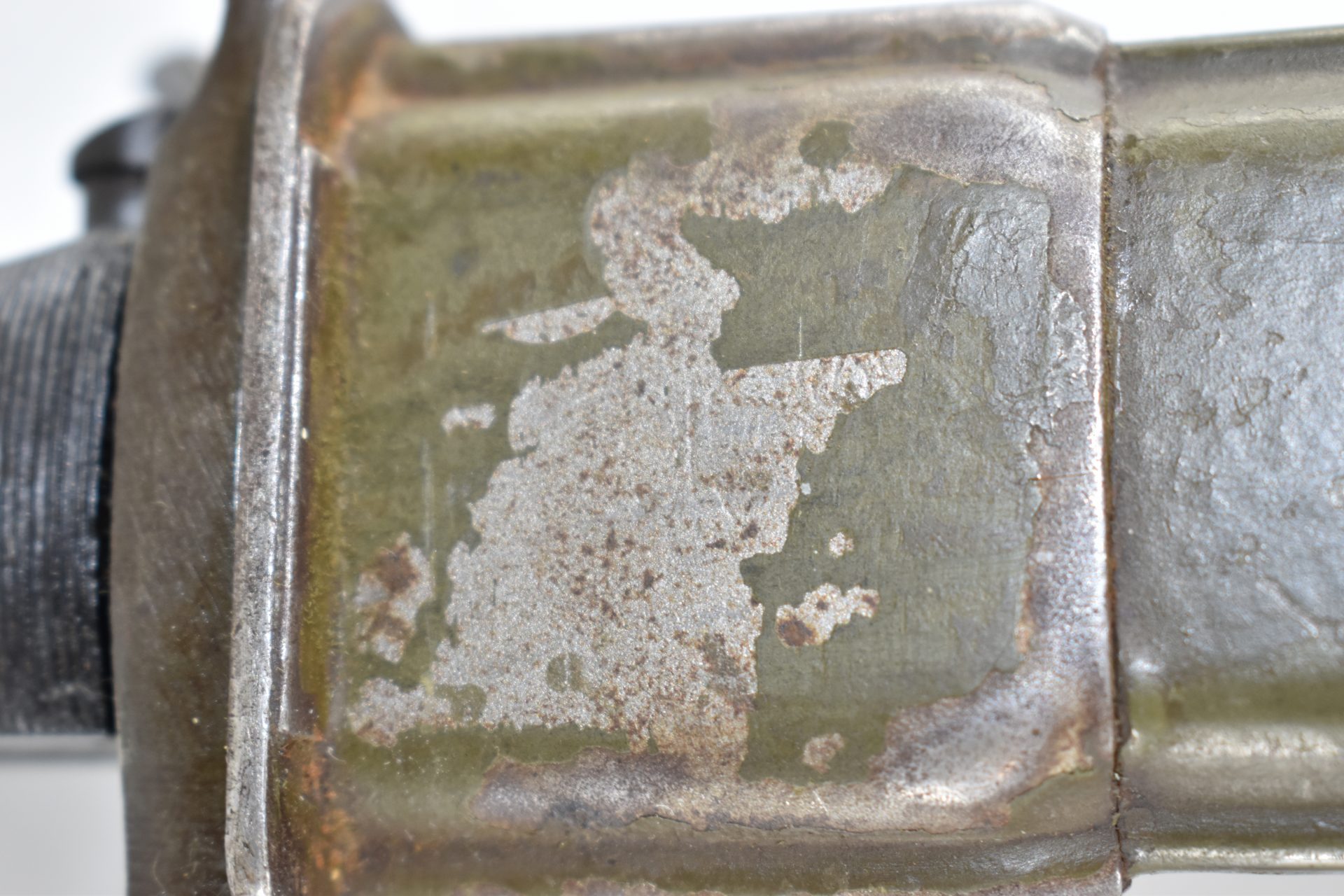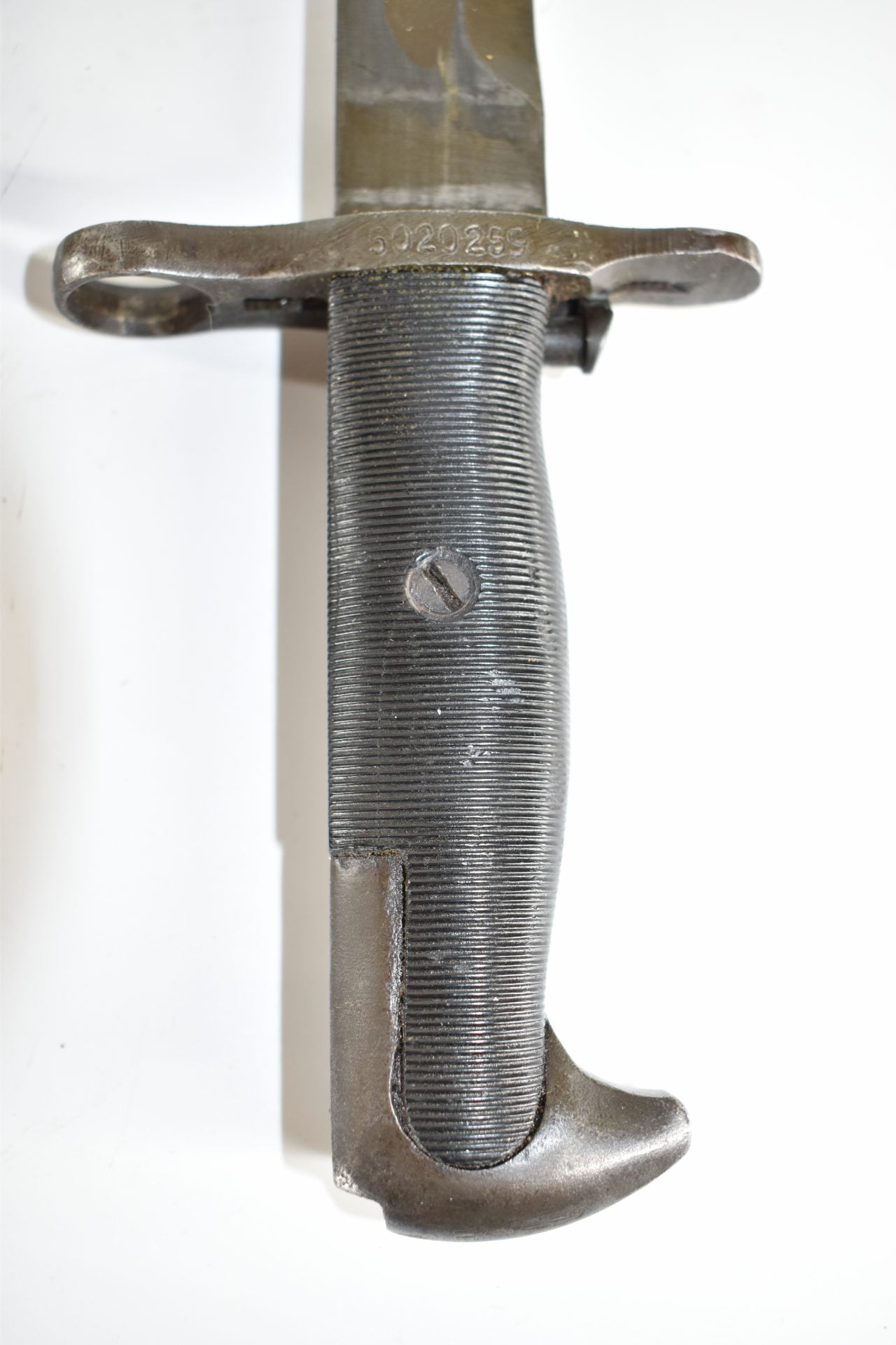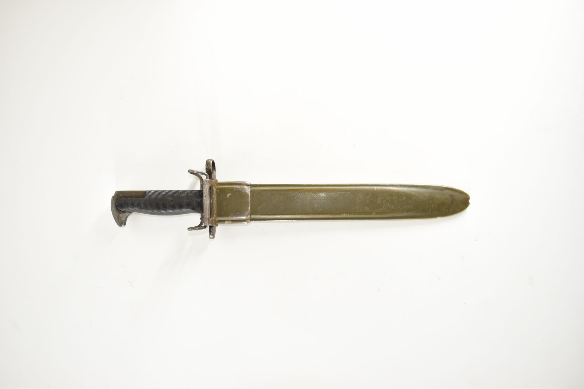This UC manufactured Bayonet is complete with its scabberd and belt hook. Scabberd has lost some of its green paint but is a nice WW2 example! General condition is good+.