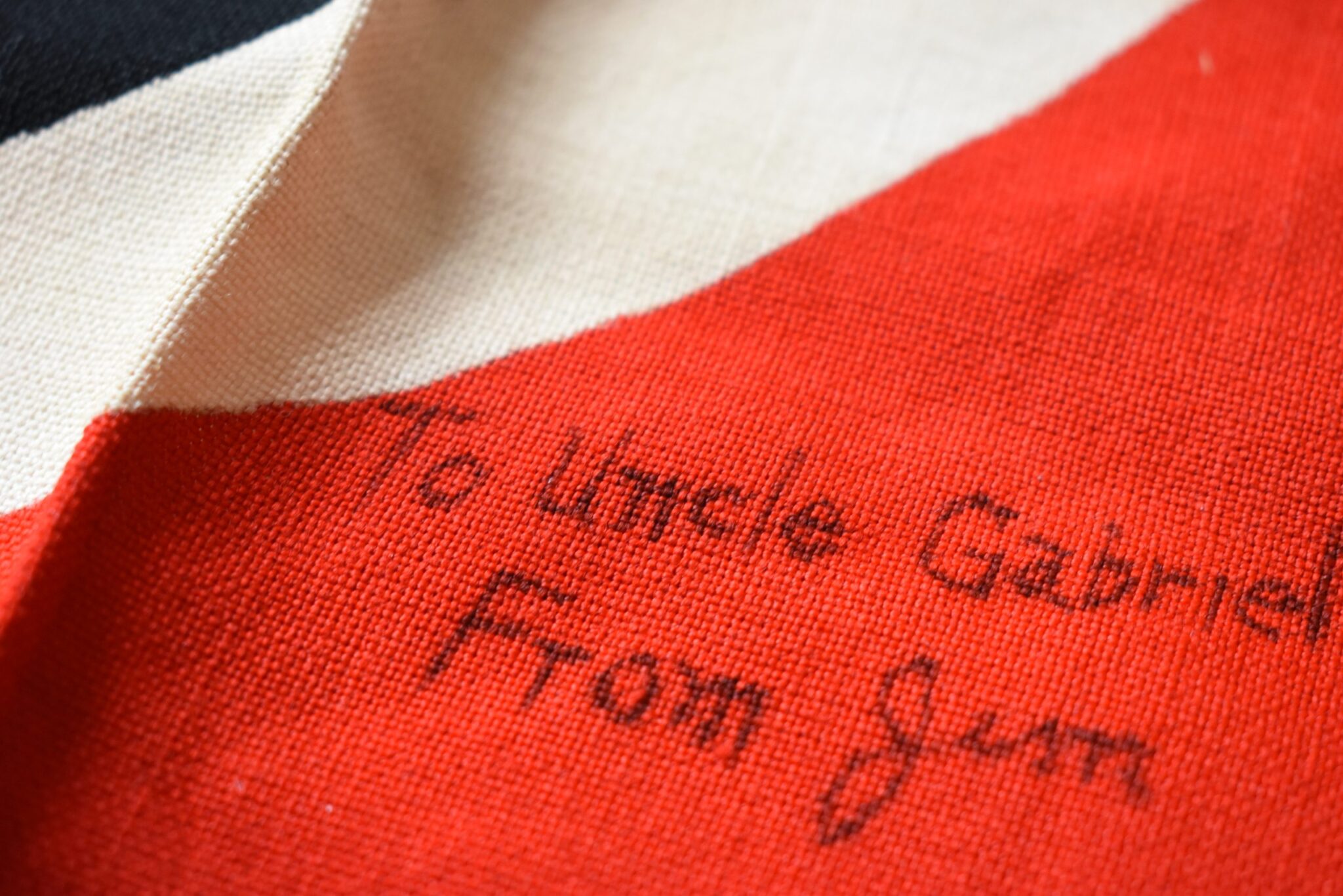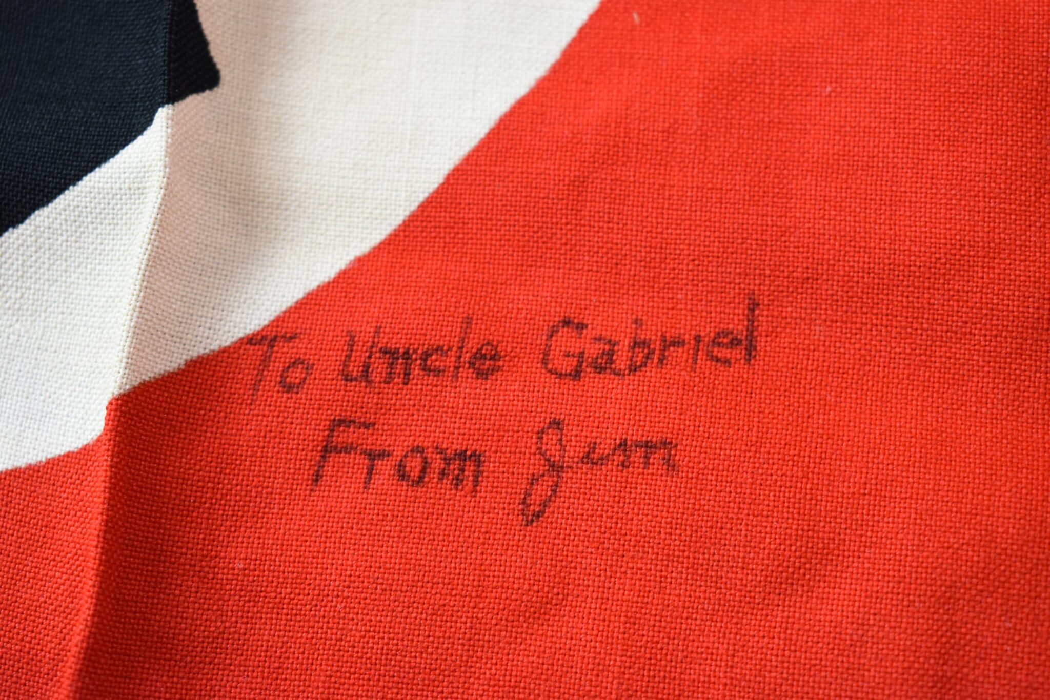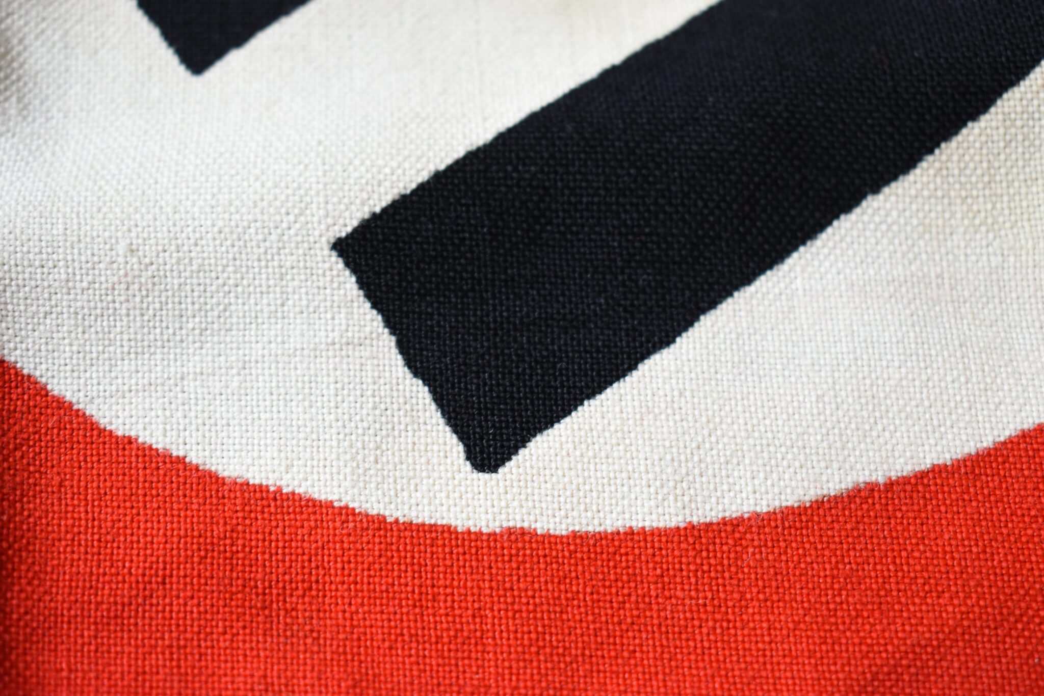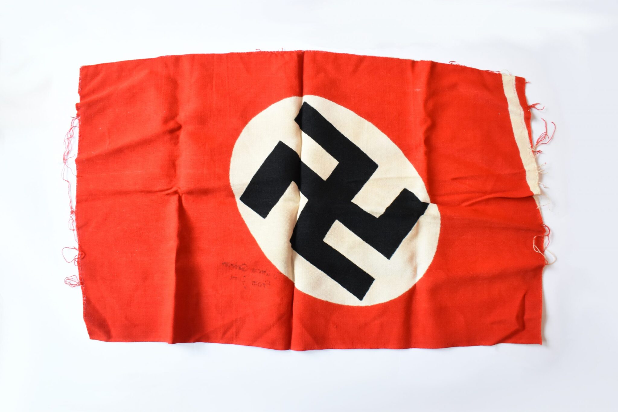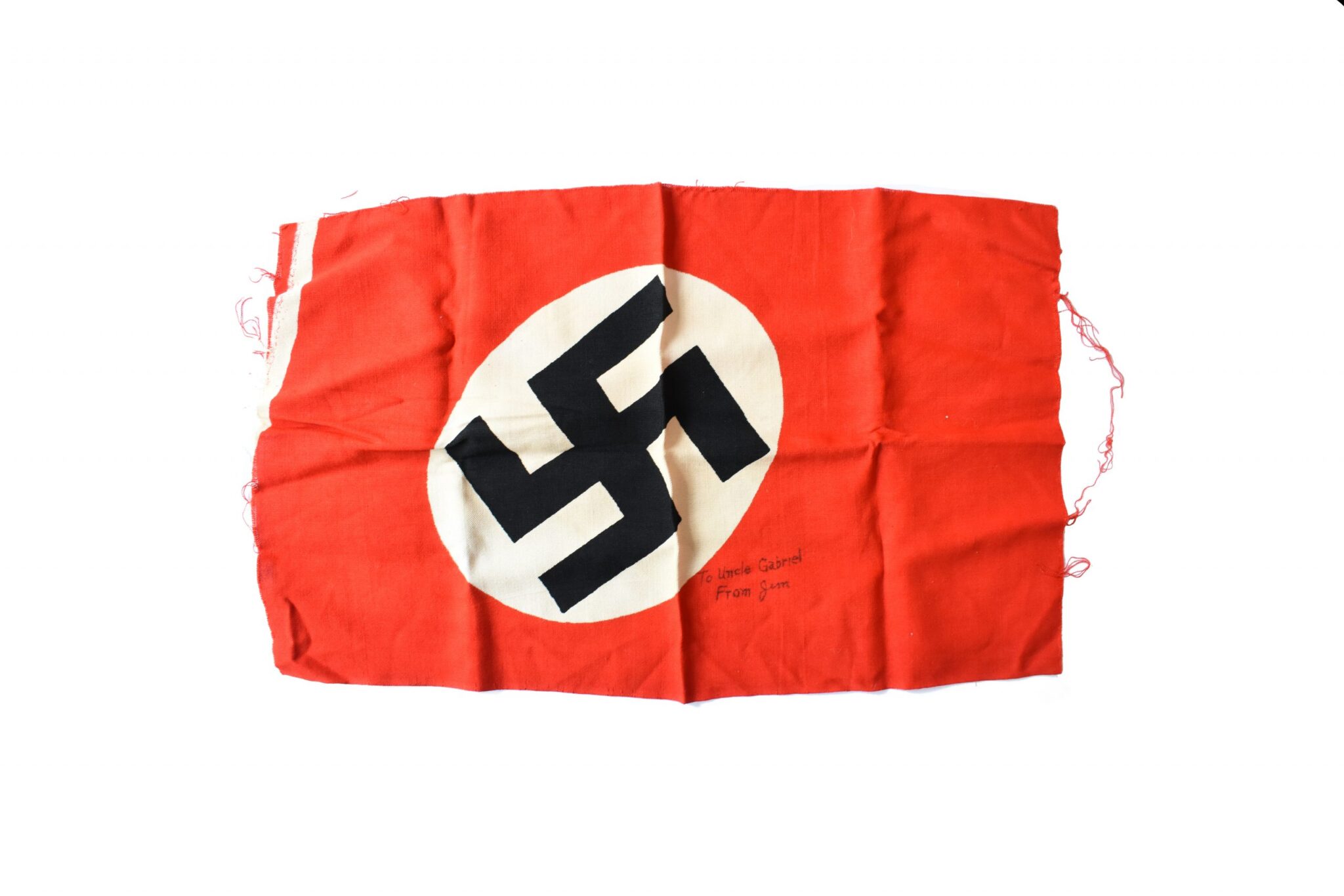 Nice Vet bring back of a German banner with Swatsika. This part is a cut out of the complete banner and approximately 30x50cm sized.