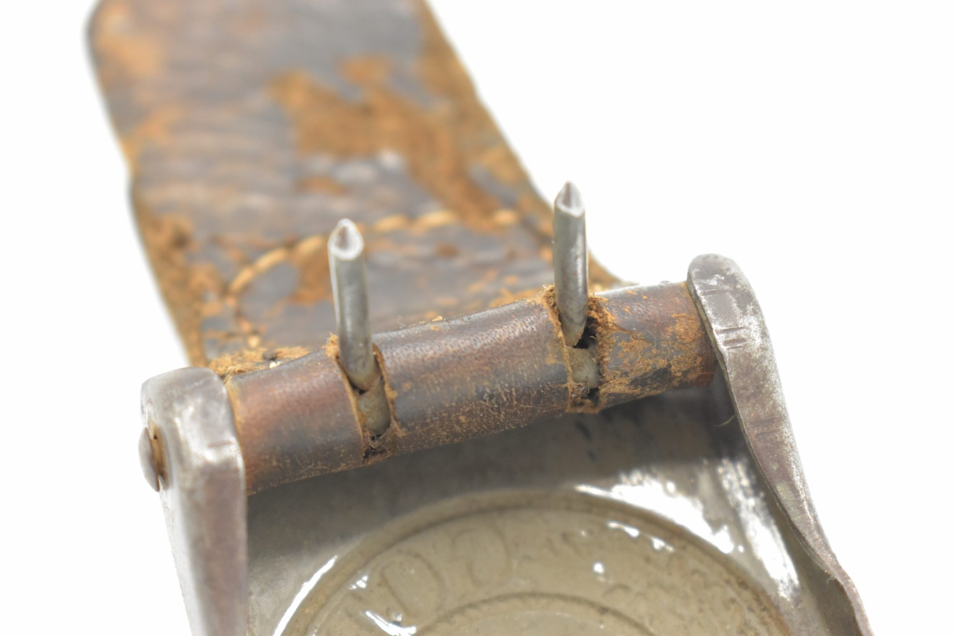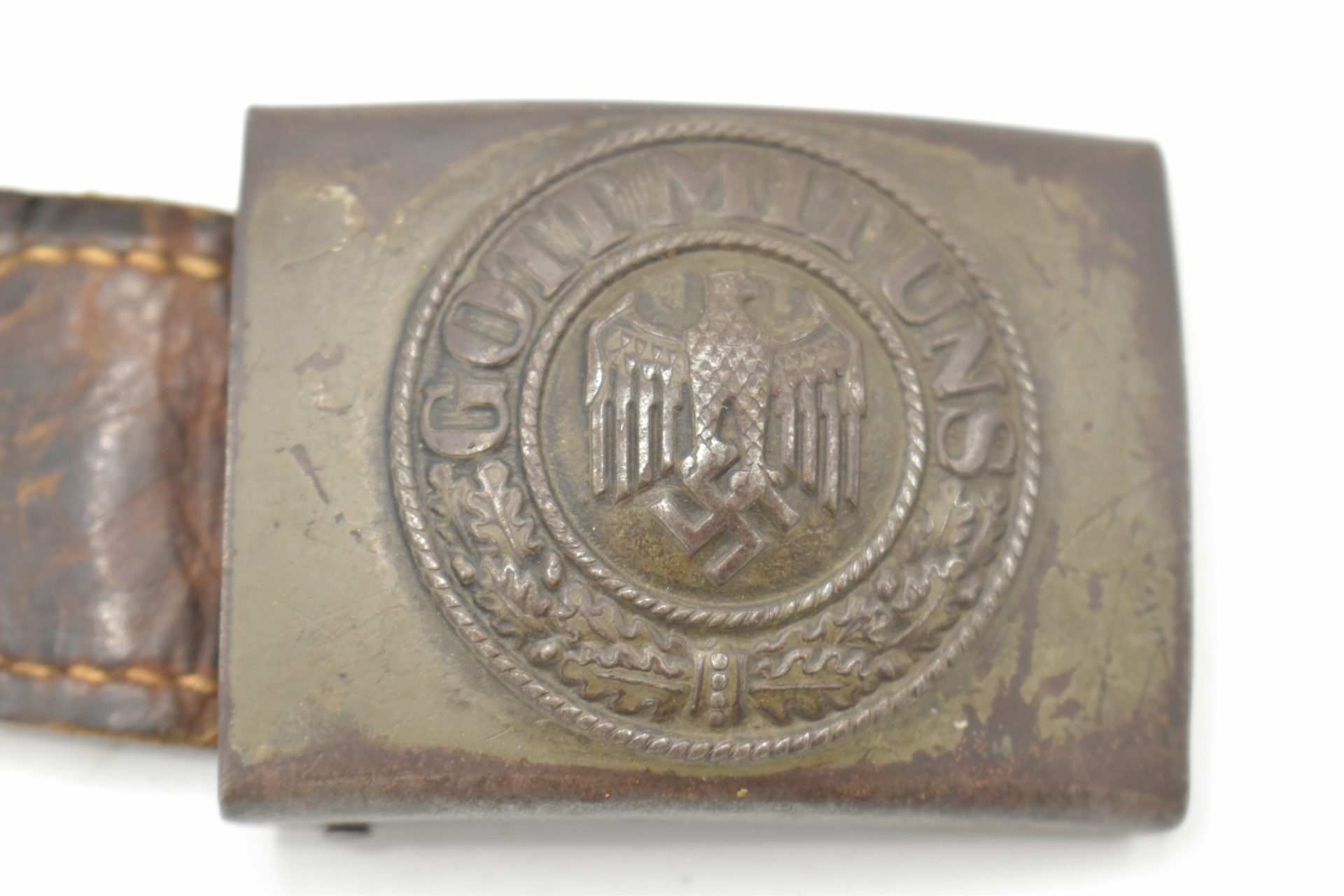 In Nice condition Heer buckle belt with leather tab, made by J Kremp in 1940.
