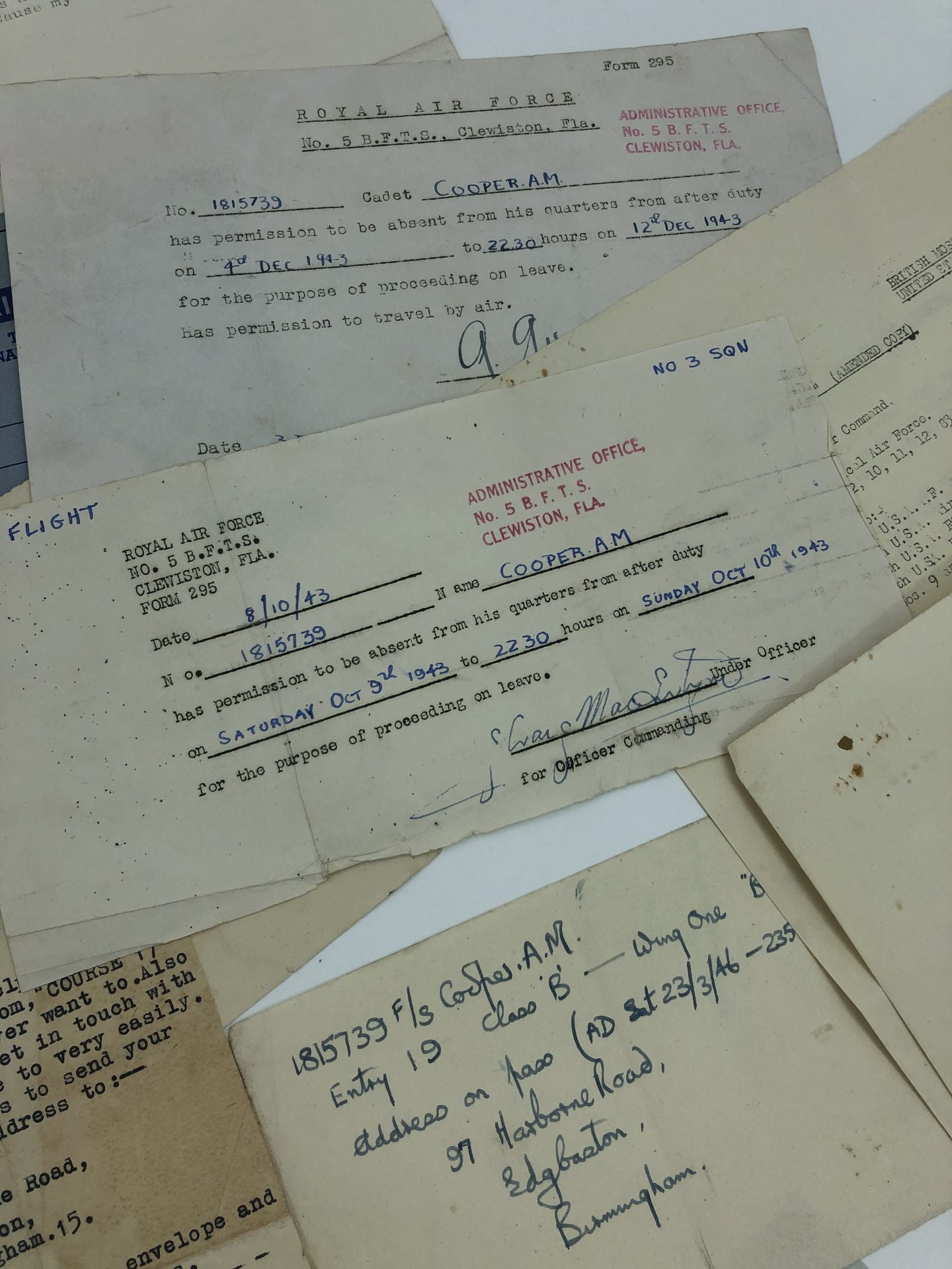 An amazing grouping of A.M Cooper, registration number 1815739,  a young second pilot and navigator , based in the US and in the UK, who flew Lancaster and trainings aircrafts.