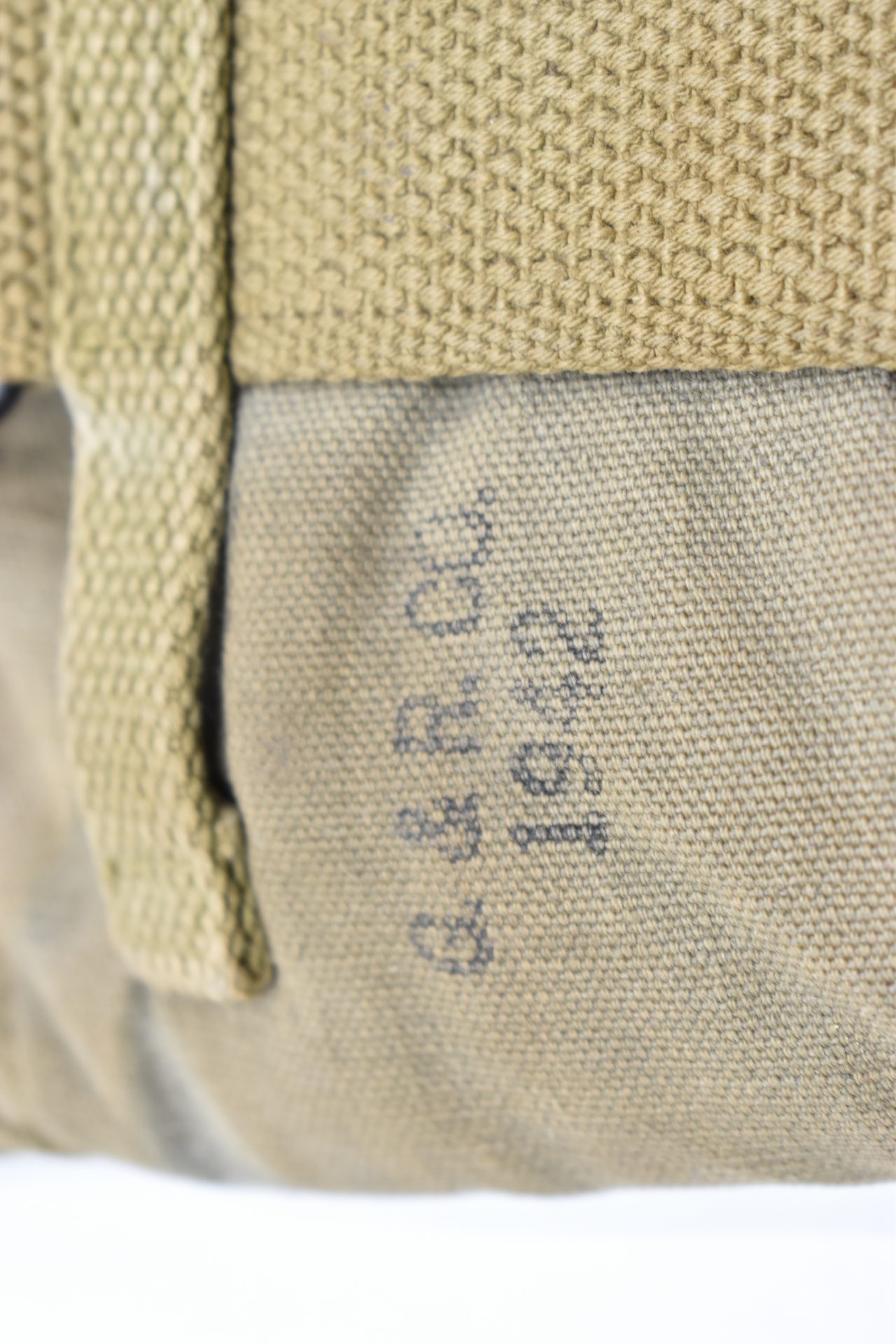 Canvas cover has two pull snaps and hooks in the back and was produced in 1942 by the G.R Company.