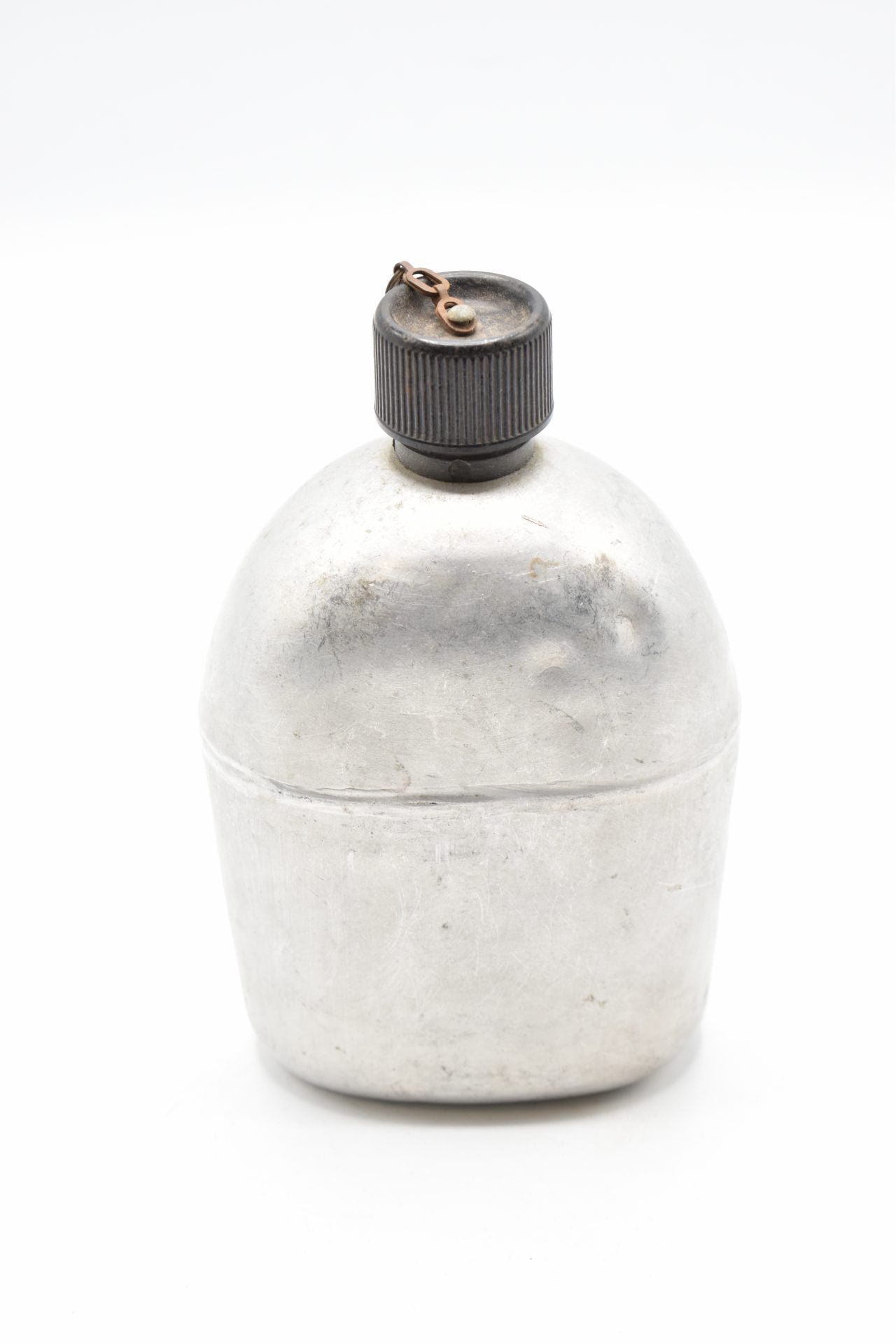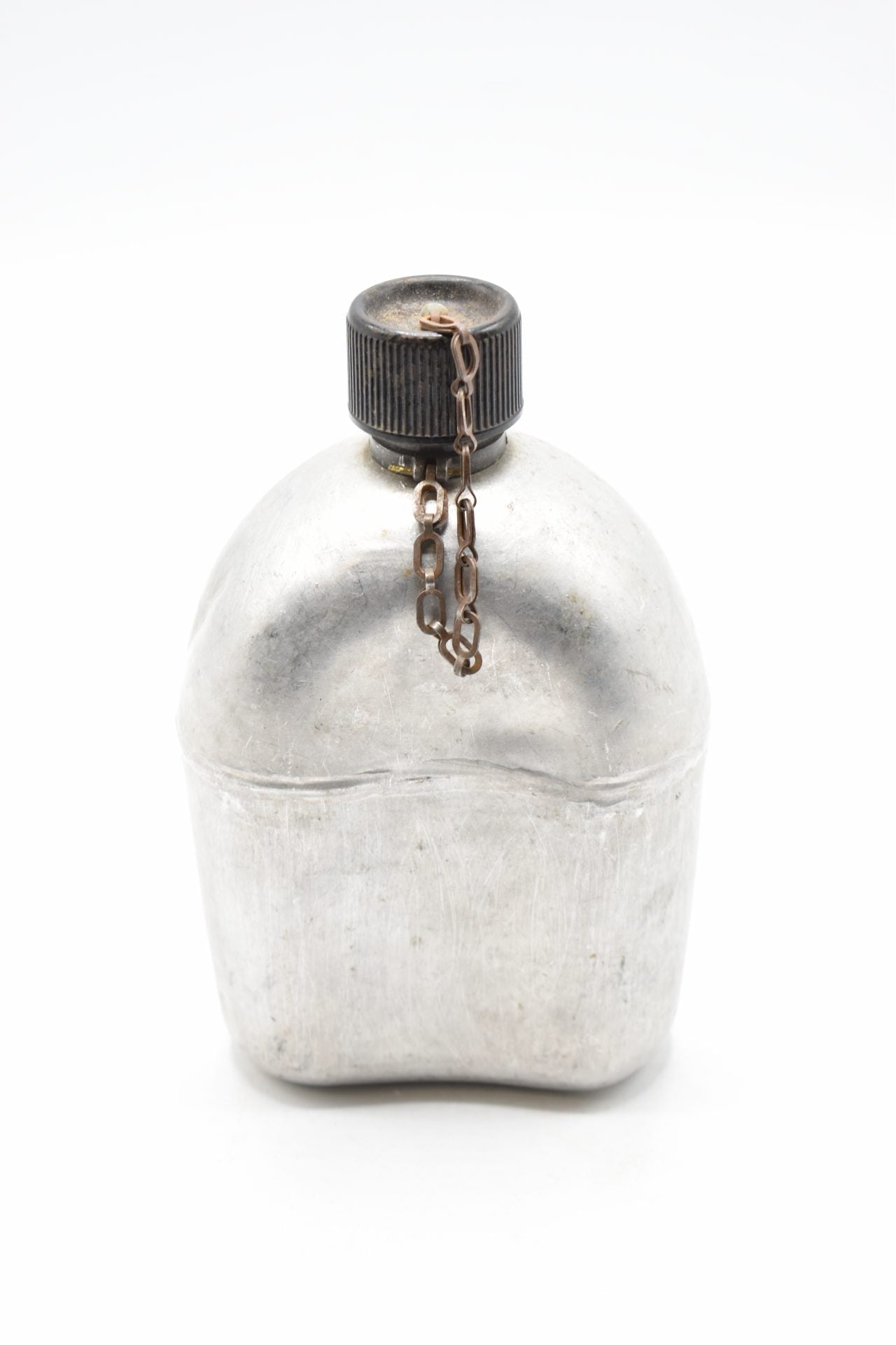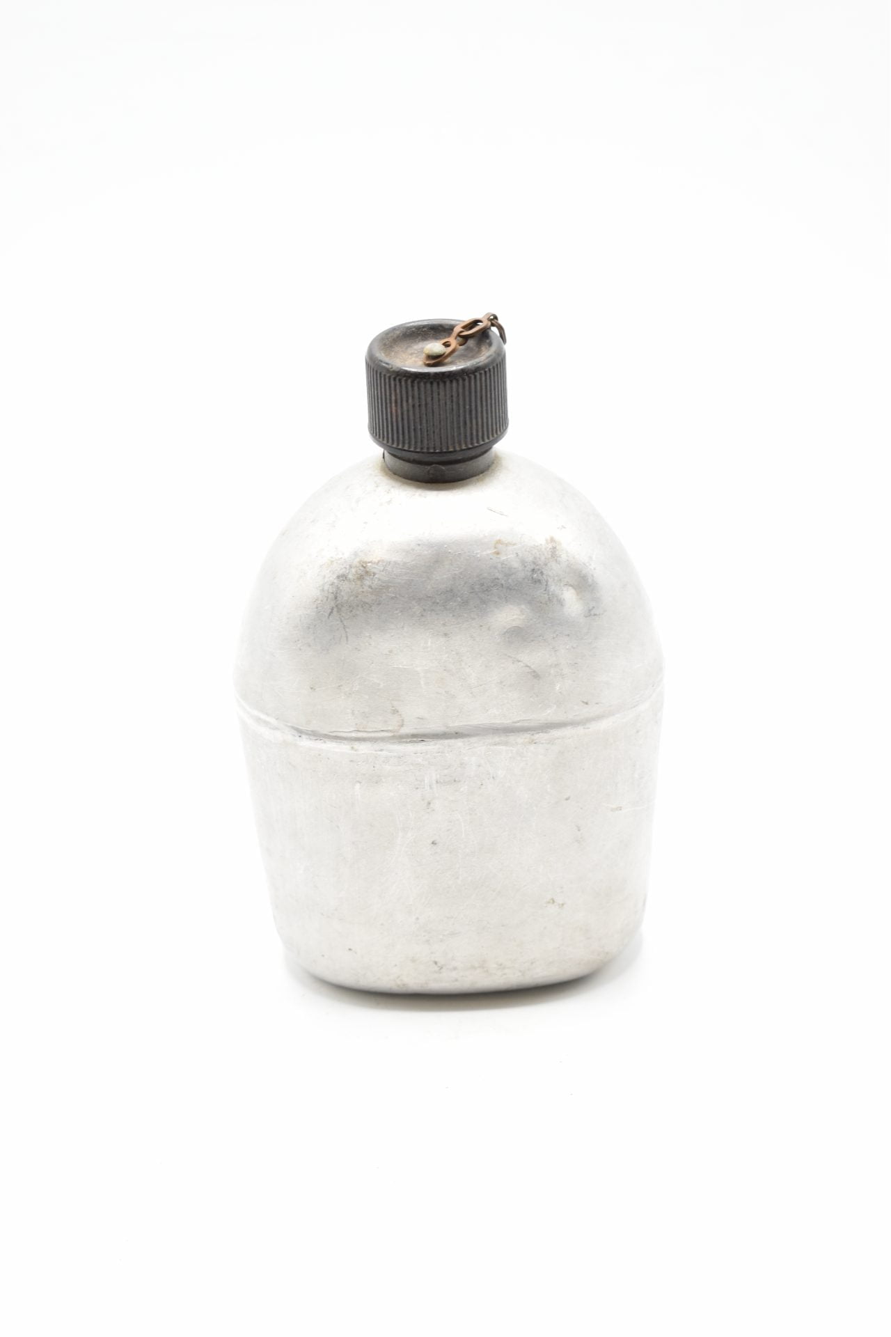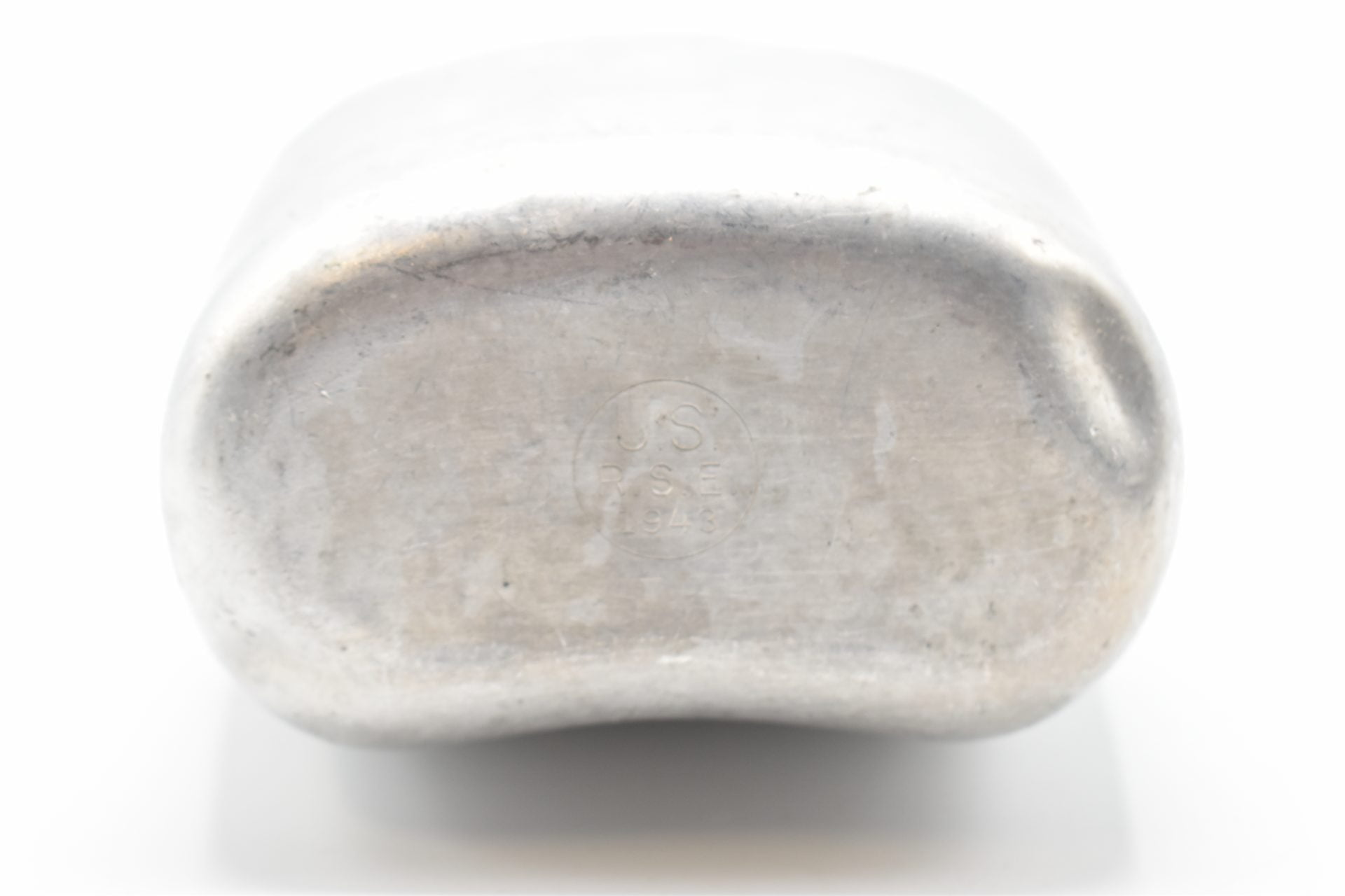 Here we have an original US Military Field Canteen with the original cup and canvas cover from WW2 produced by the R.S.E Co (Republic Stamping and Enameling Co.) The canteen is made of Aluminum or Stainless steel and has a screw-on black plastic cap attached with a chain to the canteen. The bottom is marked U.S. R.S.E Co 1943. Unfortunately this canteen no longer has its canvas.
