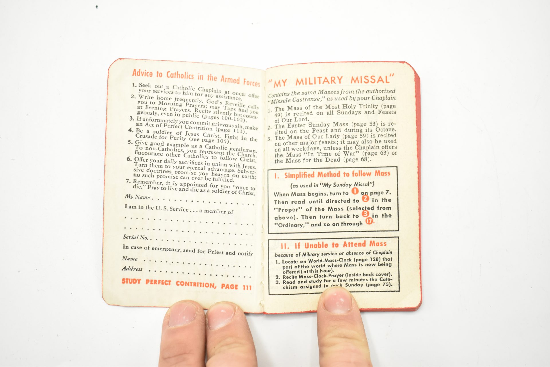 Original wartime Missal pocket book used by the military forces.