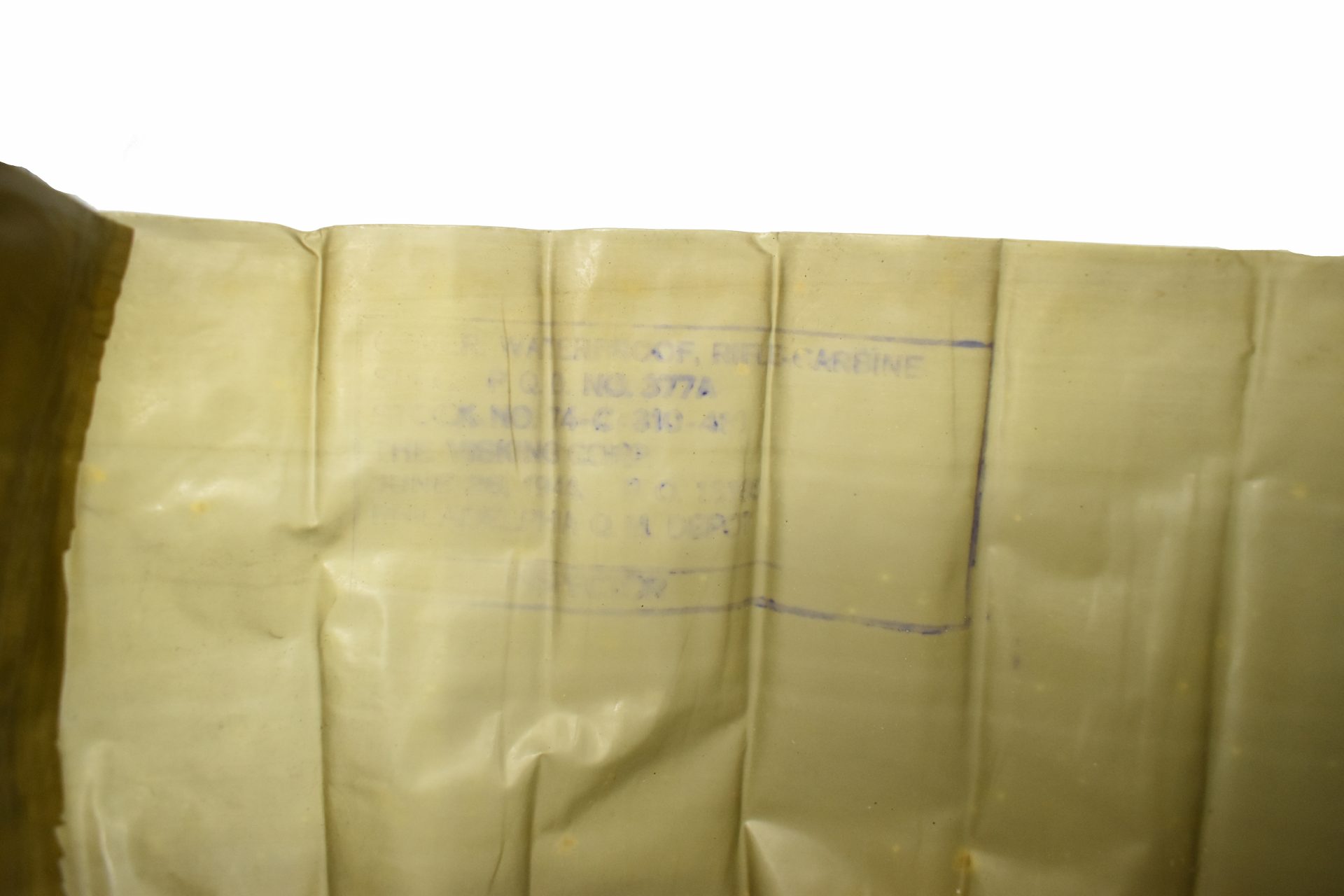 New old stock Waterproof rifle bag for the M1 garand or M1 Carbine, made in 1944. Perfect condition.