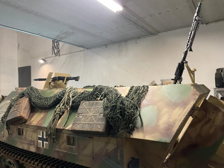 The SdKfz 251 provided direct fire support to infantry units. It was armed with various weapons, including machine guns like the famous MG34 and MG42, often named hitler’s buzzsaw, autocannons, and even anti-tank guns in some variants, like the powerfull 7,5cm Pak40. These armaments allowed the vehicle to suppress enemy positions, cover infantry advances, and engage light and even medium enemy armor.
