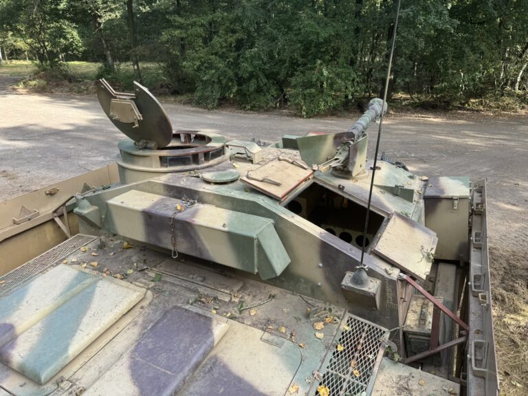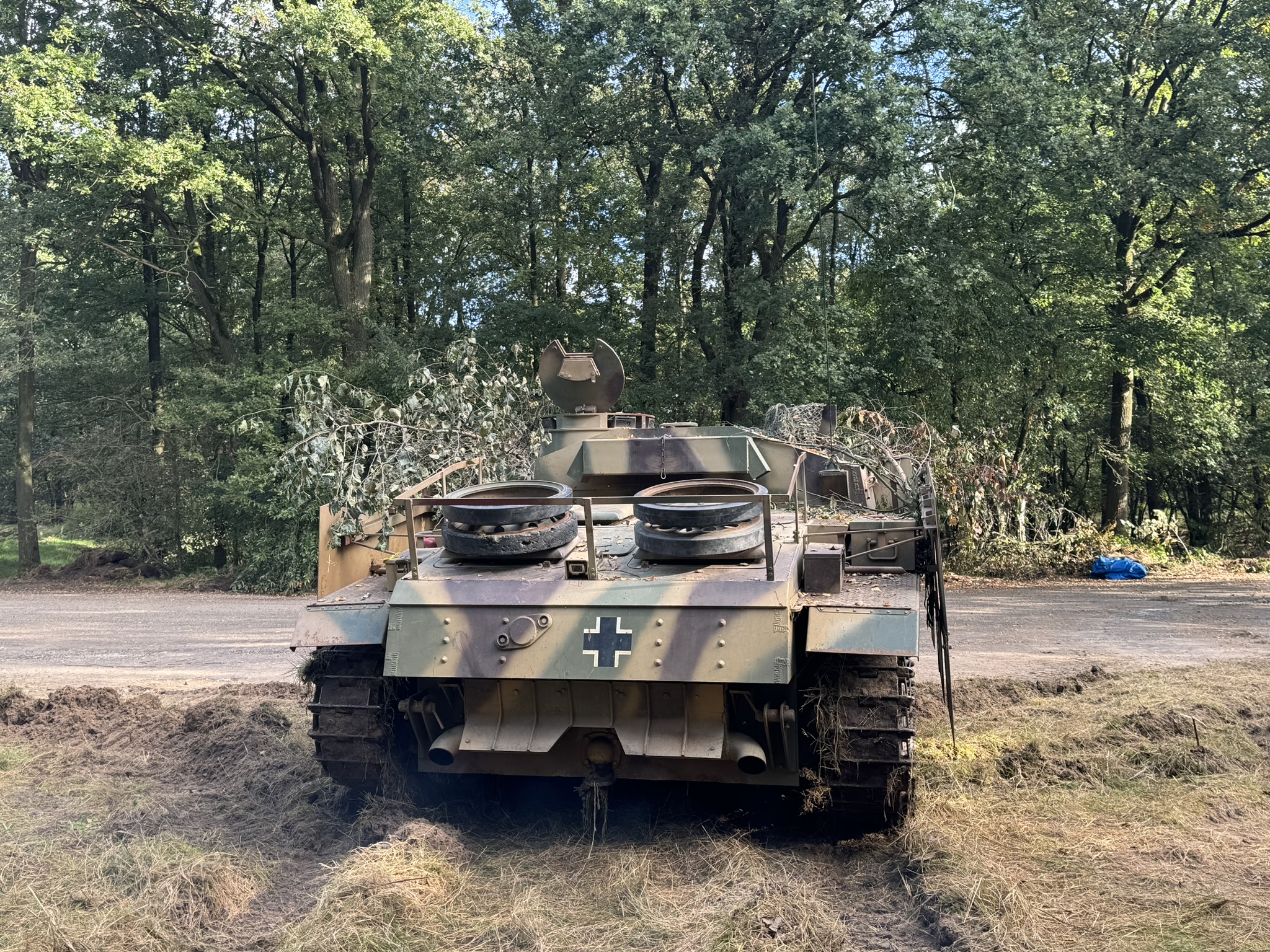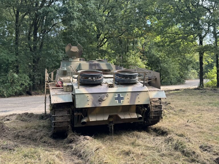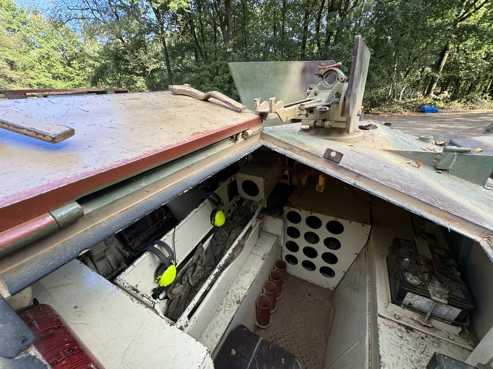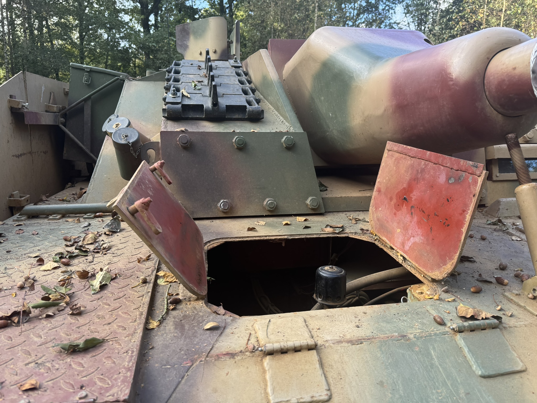 Currently, a simple tube is installed for show purposes due to Dutch law. The original “barrel” (which is a simple tube but made to look like the 7.5cm canon) has been cut into two pieces, also due to the law, but this barrel/tube is included.