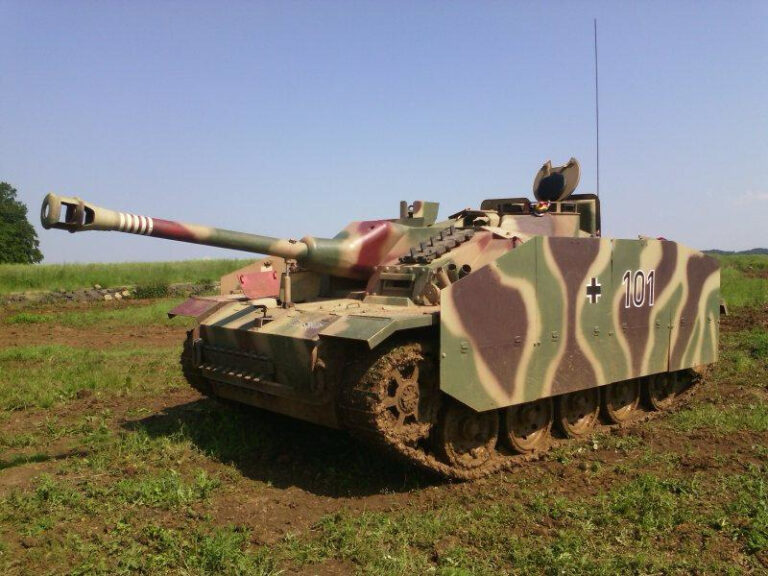 Unlike traditional tanks, the StuG III was more of a specialized tank destroyer, relying on ambush tactics, where its lower silhouette allowed it to conceal itself effectively in defensive positions. The vehicle was operated by a crew of four, and due to its relatively low cost compared to other German tanks, it was produced in large numbers to bolster the Wehrmacht’s dwindling resources during the later years of the war.