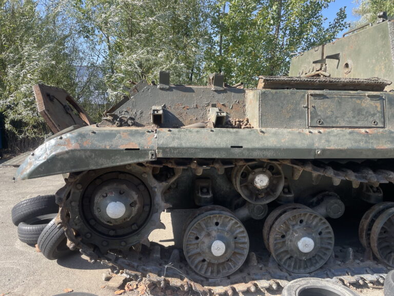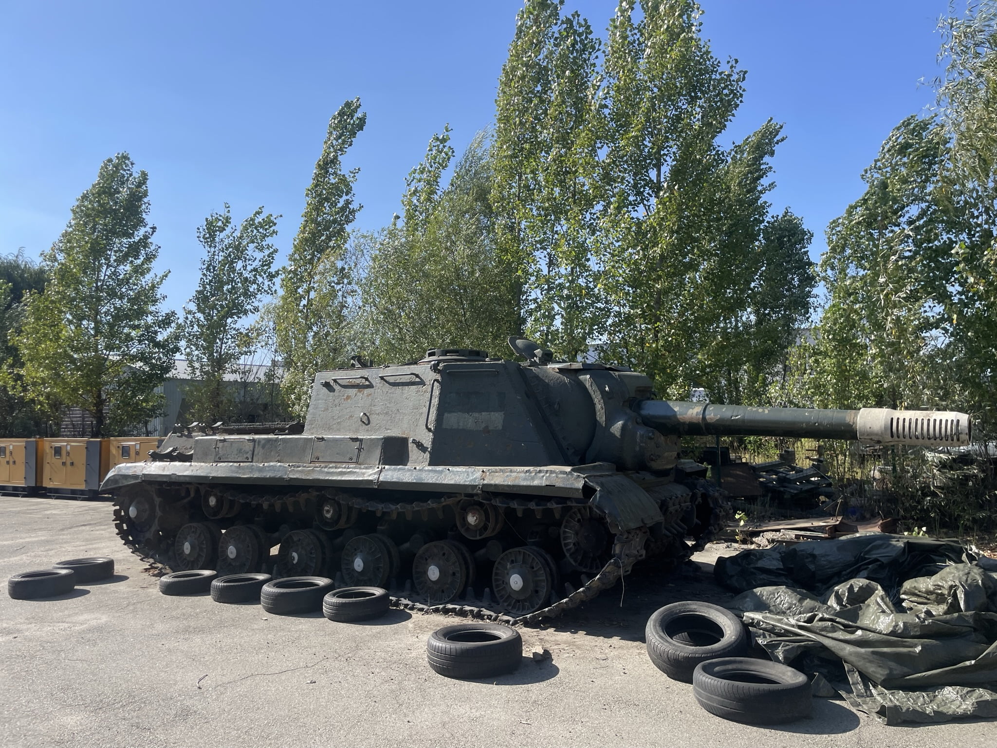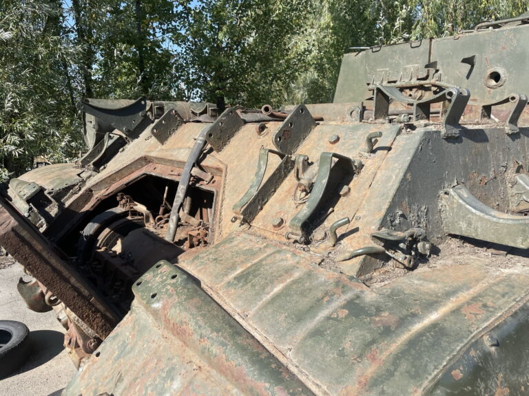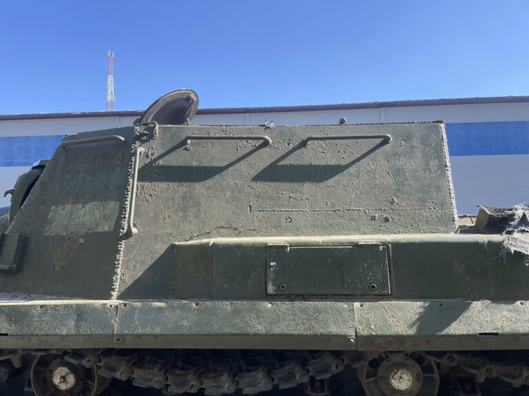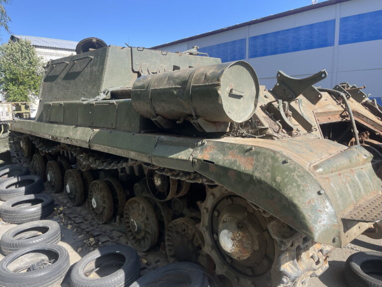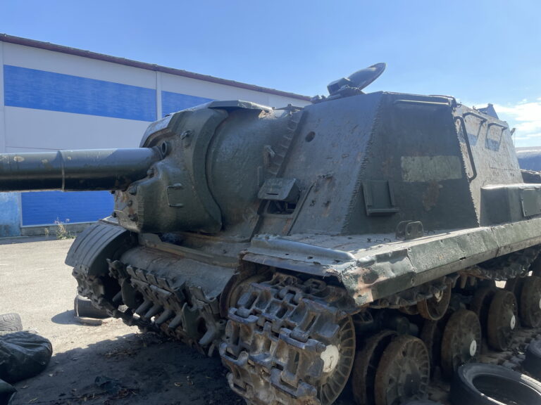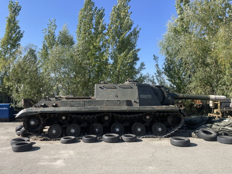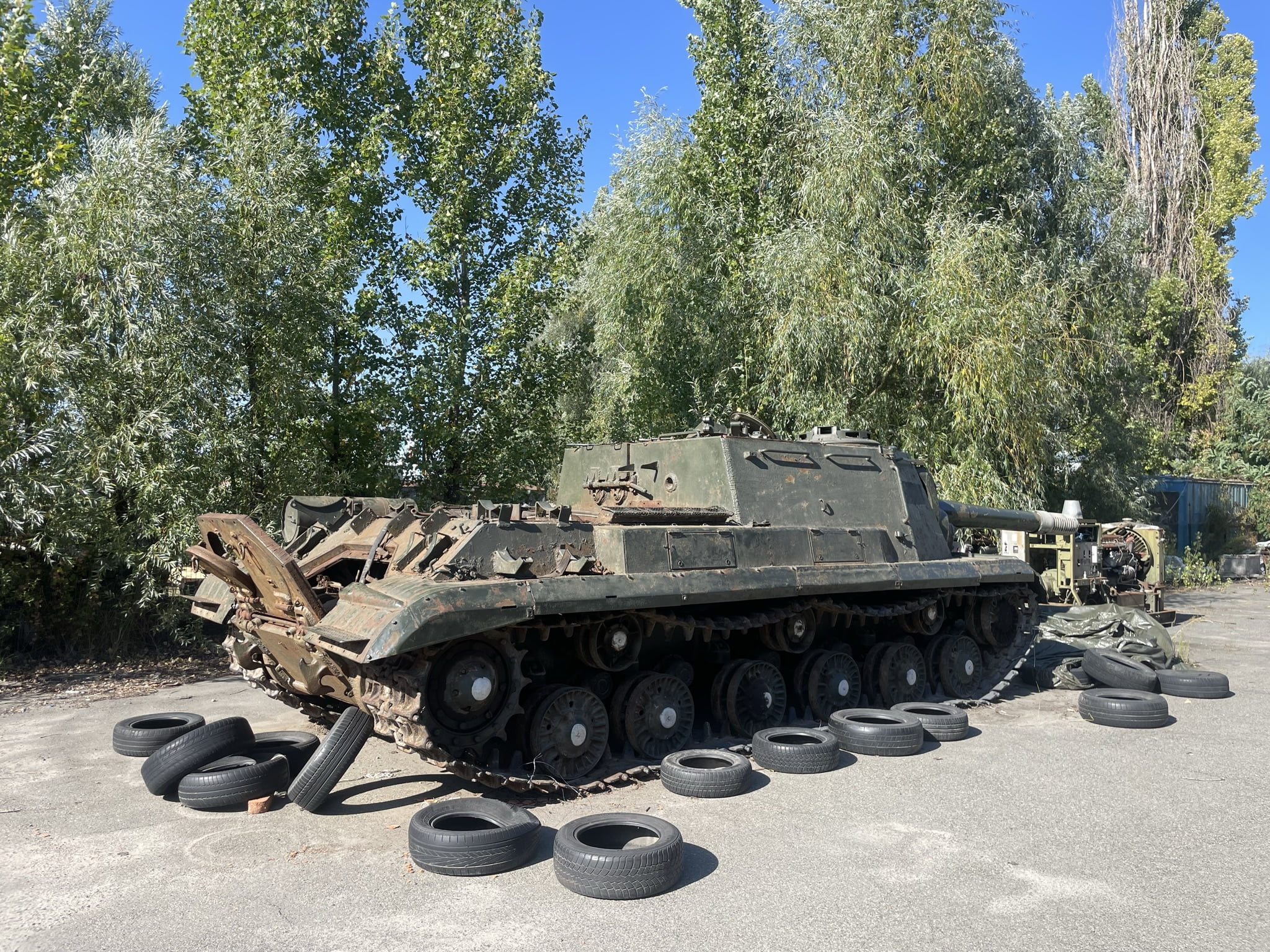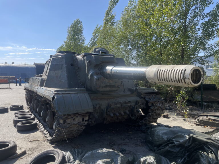 This ISU-152 was rebuild in the 1950’s by the soviets to the ISU-152K, with extra storage boxes on the side of the tank. After the fall apart of the soviet union, the Ukraine army used this ISU for a certain amount of time till the 90’s.