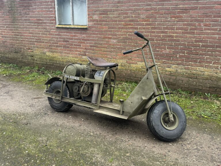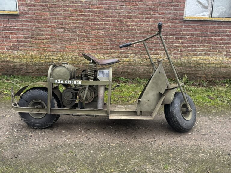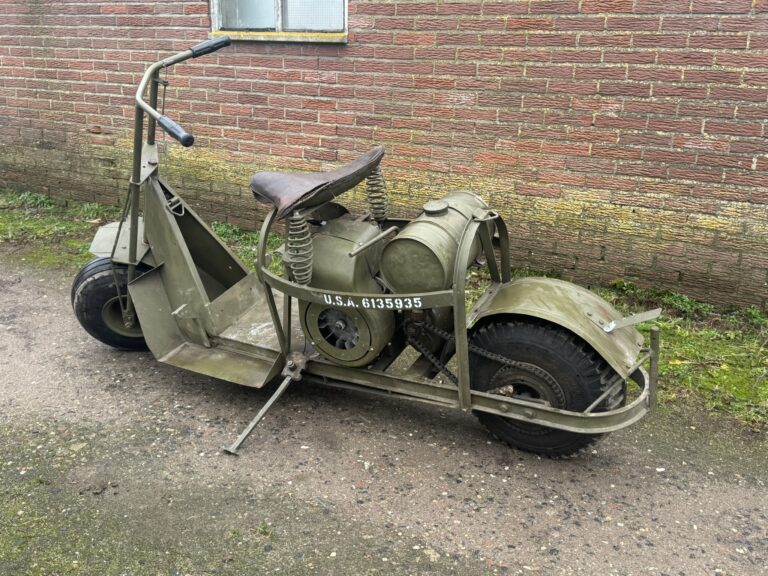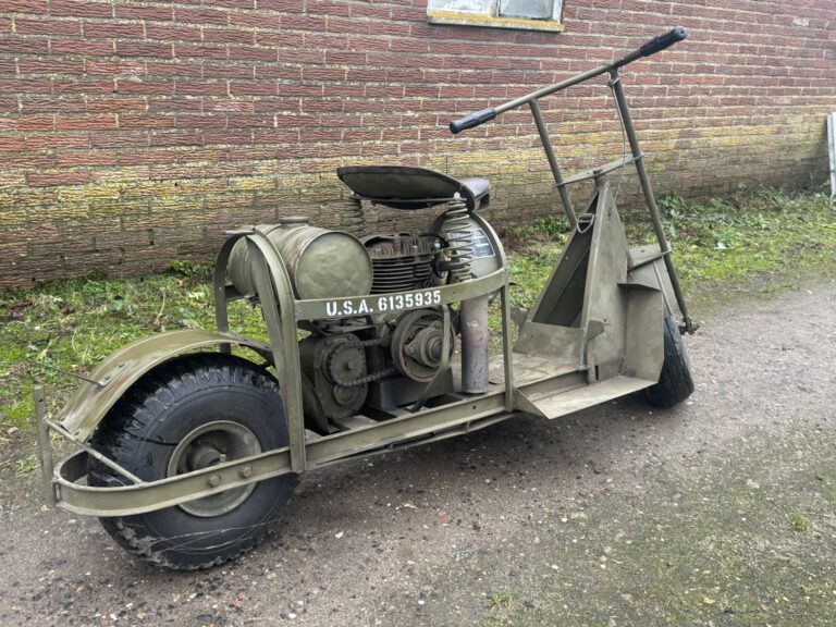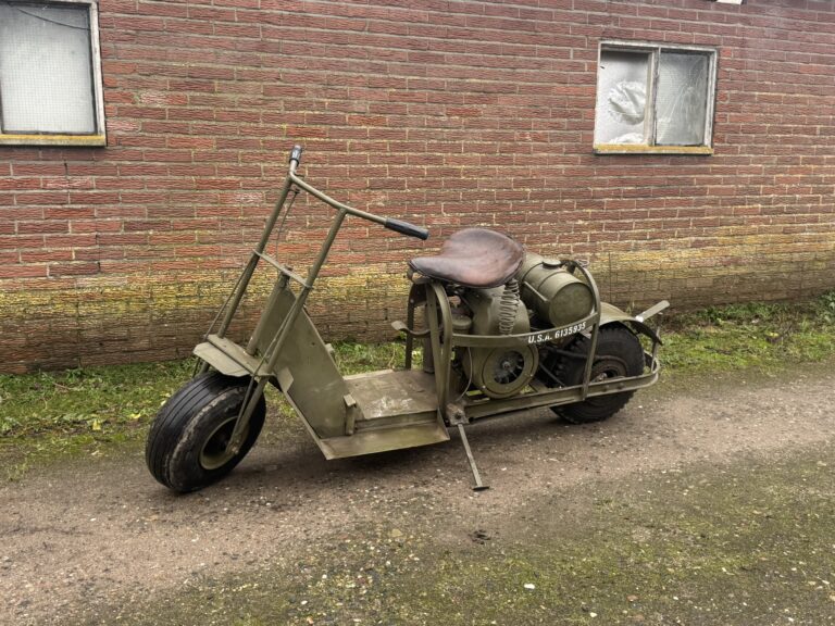 The Cushman Model 53 Airborne Motorcycle was specially designed for American paratroopers during World War II. Lightweight and compact, it could be dropped by parachute or transported in gliders, making it ideal for operations like Market Garden (1944) and Varsity (1945). Its rugged design, reliability, and historical significance make it a prized collectible today.
