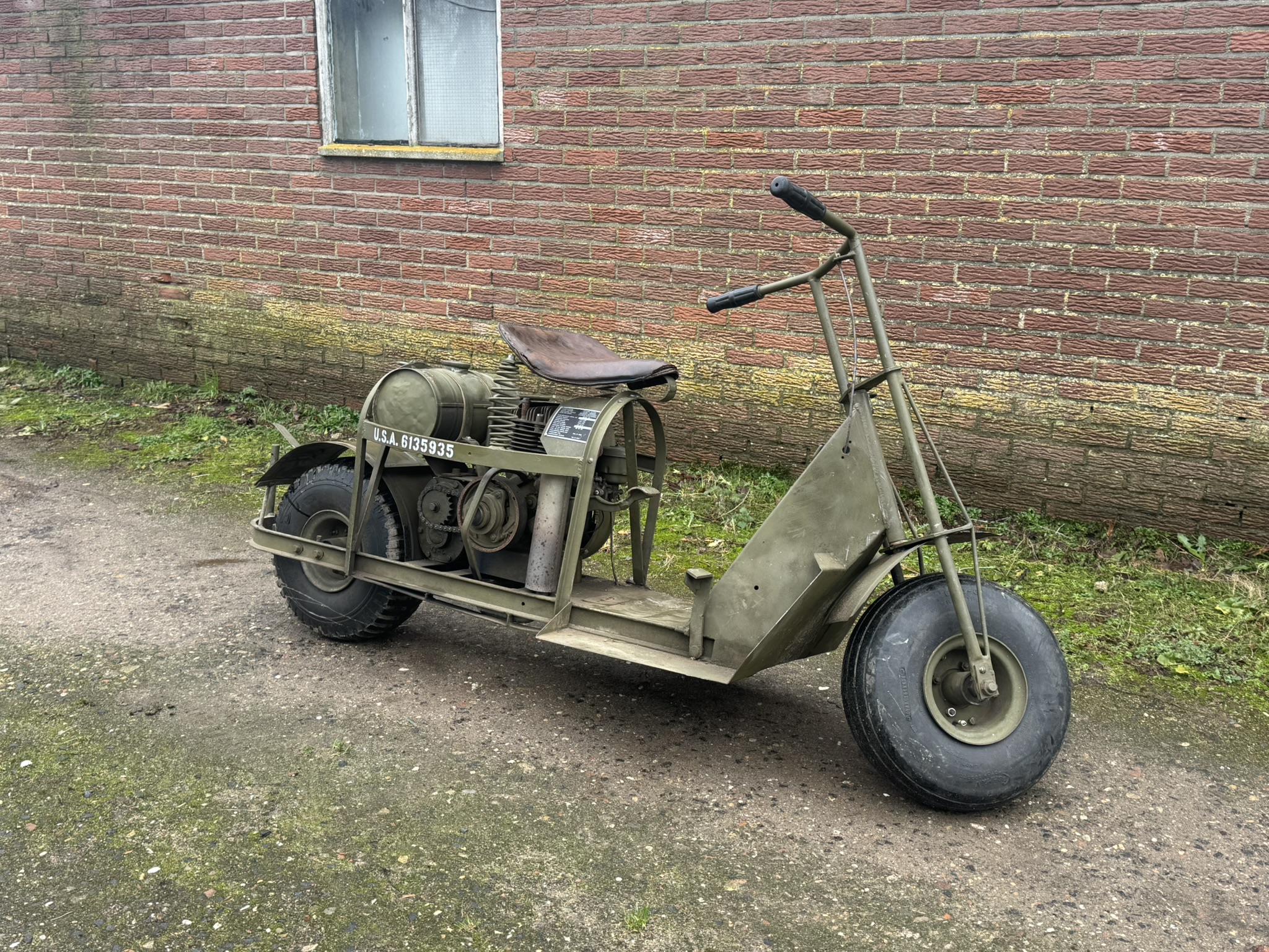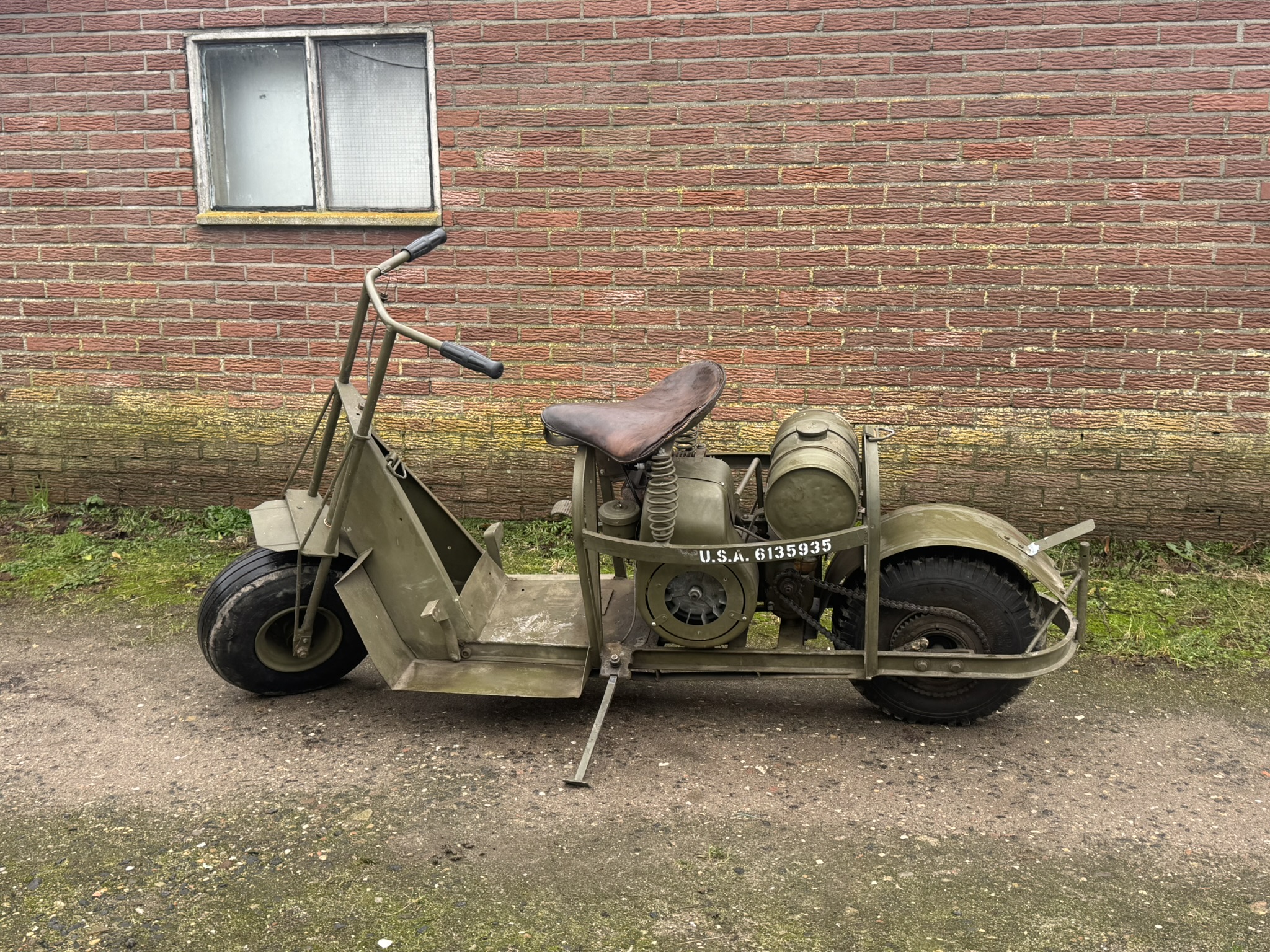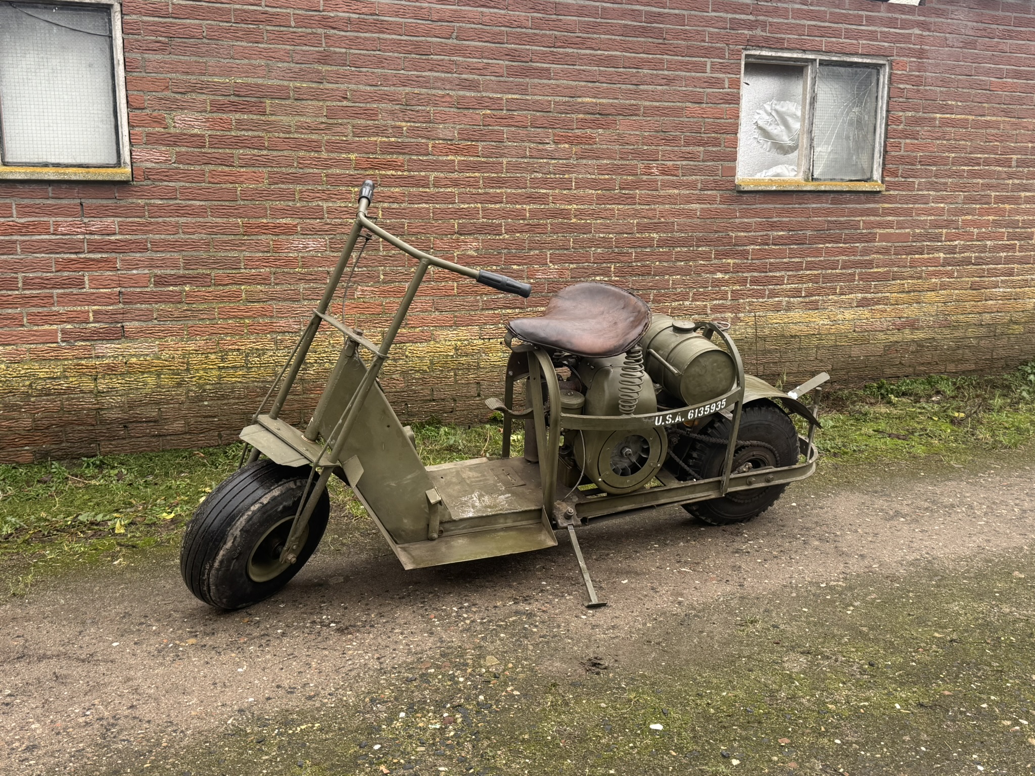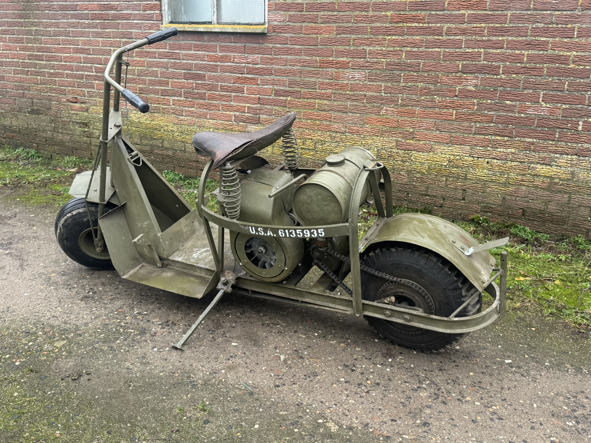 Very nice and original U.S. Cushman Model 53 Airborne Motorcycle, used by American airborne troops such as the famous 101st and 82nd Airborne Divisions during Operation Market Garden in September 1944 and Operation Varsity in 1945.