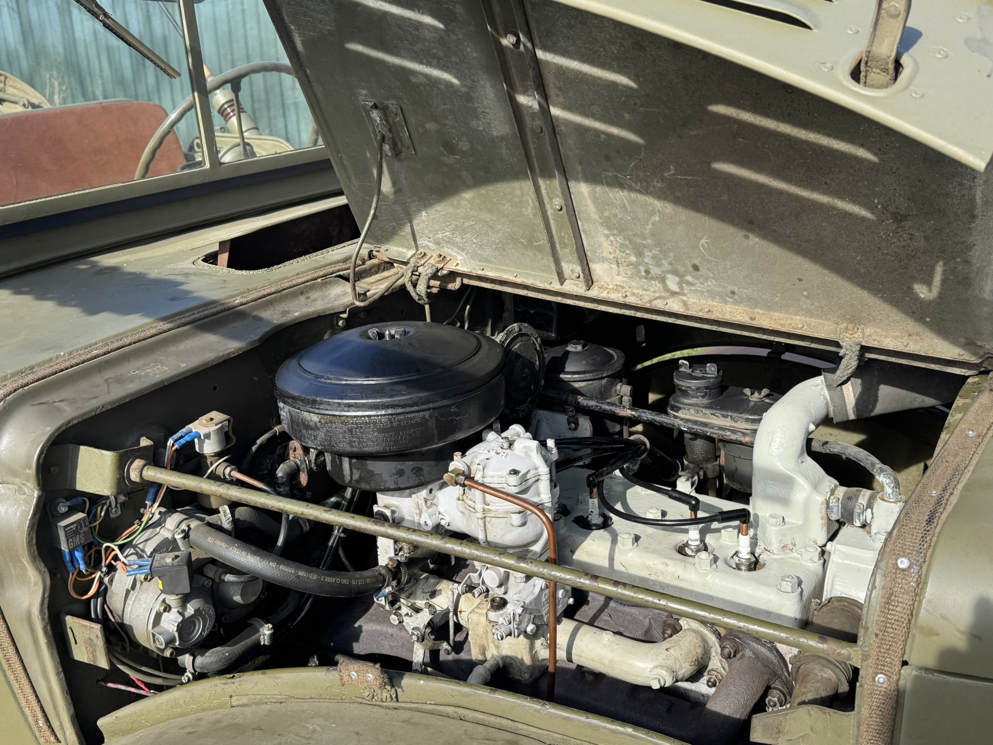 Dieses Command Car hat gerade eine umfassende Inspektion durchlaufen. Wir haben den Kraftstofftank, das gesamte Kraftstoffsystem, die Ansaug- und Abgaskrümmer ersetzt und die gesamte Elektrik, das Gassystem, das Kühlsystem, die Zündung und vieles mehr überprüft.