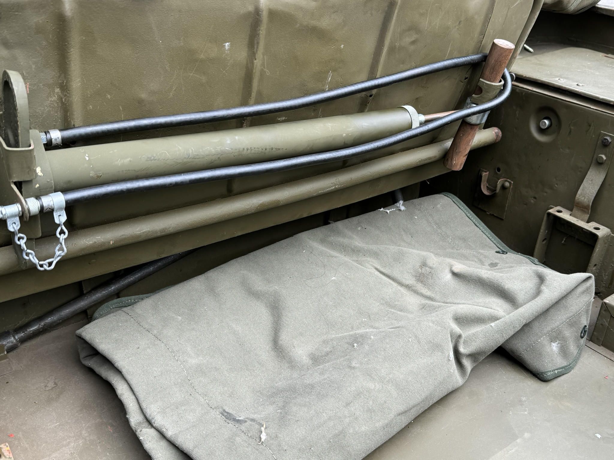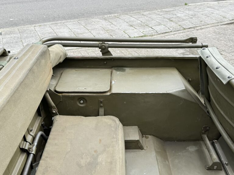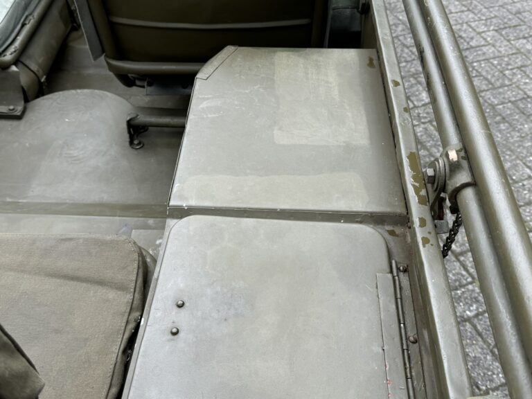 The body has been modified or replaced, likely by the British Army, with a 1943-1945 body featuring a rifle holder and blackout light. The body is original with body number, so no replica or post war rebuilded one.