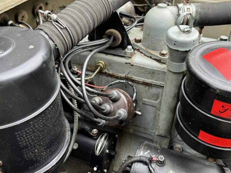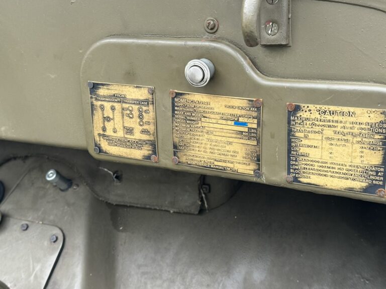 The dashboard plates match with the chassis number, but the engine is a wartime Willys engine with a Ford marked head. (W3 casting number)